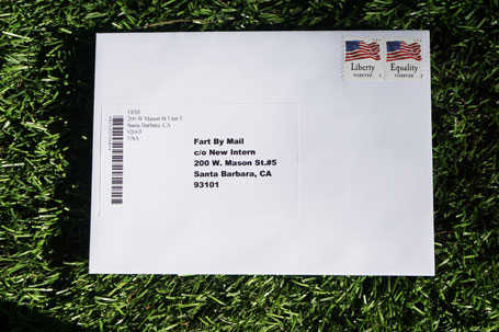 Sure, you could buy a jar, fart in the jar, buy a greeting card, package them, wait in line at the post office, and send the fart jar and greeting card for a premium...but who has time for that?! And, what about the fart sound? We streamlined a turn key system for sending farts in the mail so you can sit back and send a fart from anywhere you have internet access.